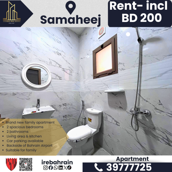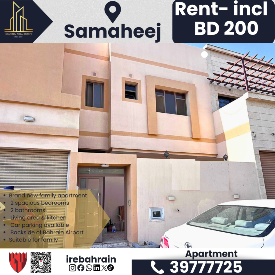2 BHK Family Apartment for Rent in Samaheej | BD.200/- Inclusive | Near Airport