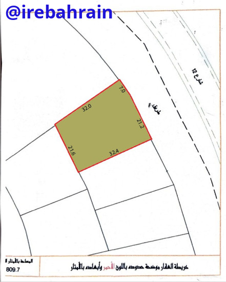 This property is located in Salmabad, near fuel station, facing the highway. Land area is 809.7 Sqm, B4* classification, suitable for showroom, offices, coffee shop etc. rent is BD.1/- per sqm. Total monthly rent is BD.809/- . easy to Tubli, Manama, Sitra etc.