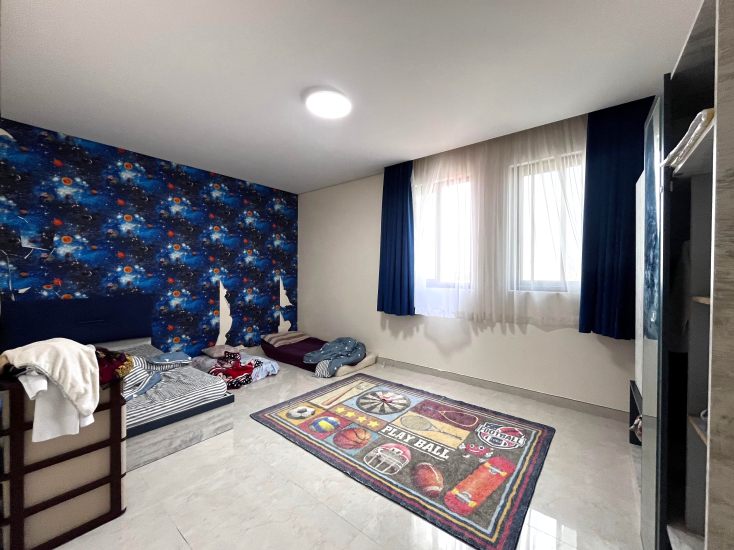 This villa is constructed by Danaat , consist of 4 bed rooms , Spacious living area, Separate Majlis, guest washroom, Spacious equipped closed kitchen, store, housemaid room , laundry area, car parking, balcony, wardrobes, small garden etc. Land area is 188.6 m² ,Built up area is 250 m² . We are offering best price BD.129900/- only. Located near Lulu Express Super Market, easy to Emirates Mall, Al Helli Super Market , Hamad town etc.