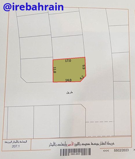 Discover the perfect opportunity to build your custom villa in Bu Quwah, Saraya 2! This prime RHA-classified corner plot spans 207.1m² and is ideally situated on two main roads with direct access to the highway—providing effortless connectivity across Bahrain. Located near Capital British School and the popular Argan Village, this plot offers both convenience and lifestyle appeal, with a fuel station and all essential services just moments away. Positioned for future growth, the area will benefit from a planned bridge ensuring even greater accessibility. Whether you're looking for a strategic investment or the ideal location for your family home, this corner plot in Saraya 2 offers unmatched potential. Price: BD.77,500/-. Inquire now and secure your piece of Bahrain's thriving real estate landscape.