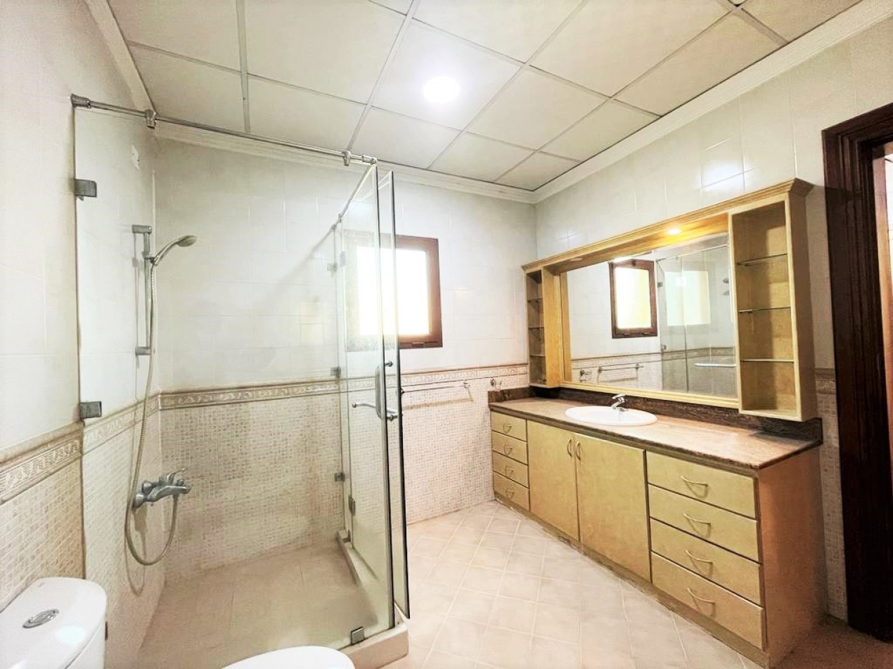 This spacious villa contains 3 bed rooms with attached bathroom, wardrobes , 2 living area, equipped kitchen, dirty kitchen, housemaid room, drivers room, covered car parking, 24 hrs security, nearby Al Mercado Mall, KSA Causeway, Saar etc. rent is BD.750/- including EWA cap BD.50/-