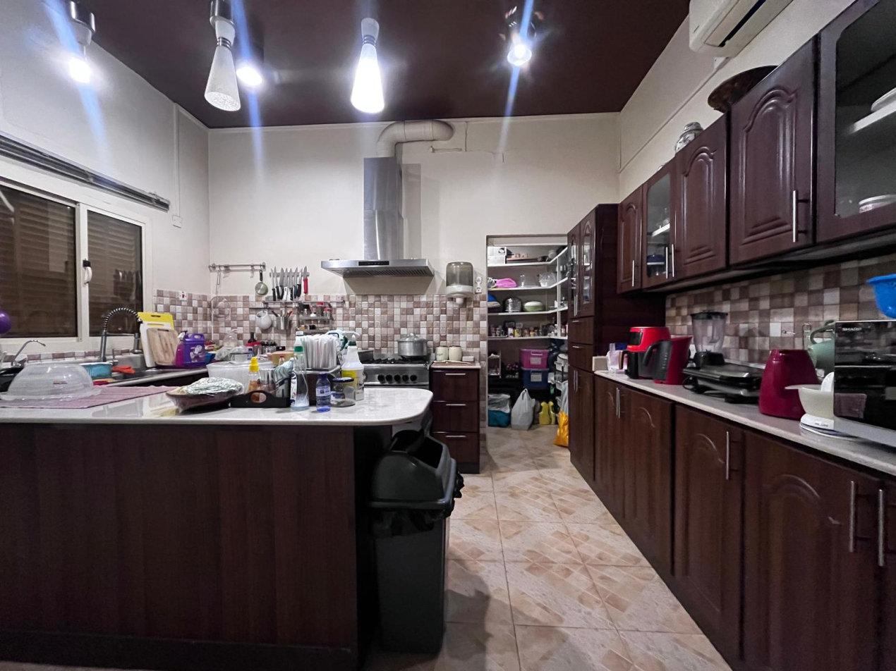 A well-maintained residential house is available for sale in Hamad Town, Roundabout 2, built on a 427 m² corner plot with two-road access, comprising 6 bedrooms, 6 bathrooms, 3 living areas, a formal majlis, separate dining area, 2 equipped kitchens, store, and laundry room, offering generous space ideal for large families; the house is approximately 37 years old yet remains in good condition, and is offered at an attractive price of BD.183,000/- only, with easy access to Hamala, Jasra, and Riffa, making it an excellent opportunity for both end users and investors in a prime residential location.
